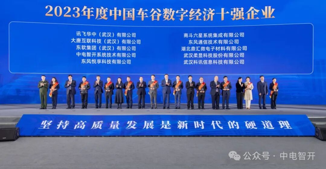 3月23日,武汉经开区经济高质量发展比学赶超争先创优大会在中国车谷隆重举行。在这次盛会上,中电智开系统技术有限公司凭借其在数字经济领域的杰出贡献,荣获“2023年度中国车谷数字经济十强企业”荣誉称号。